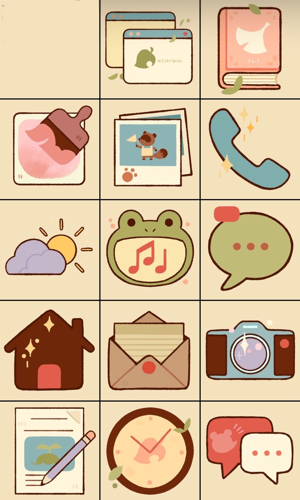 A digital theme pack for your phone featuring characters from Animal Crossing.